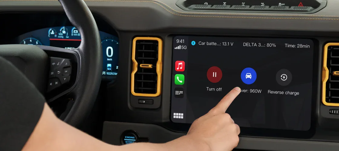Monitor real-time starter battery voltage, portable power station SOC, and remaining charging time directly on your vehicle’s infotainment screen. Adjust charging modes on the go to manage power station status—everything at your fingertips.