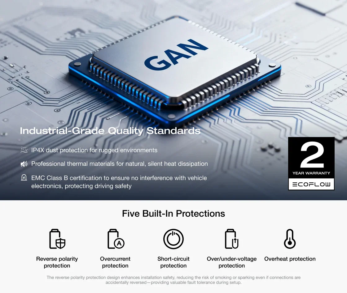 *Tested using a 12V car charging system at 25 ℃ ambient temperature. Actual performance may vary by vehicle and environment.