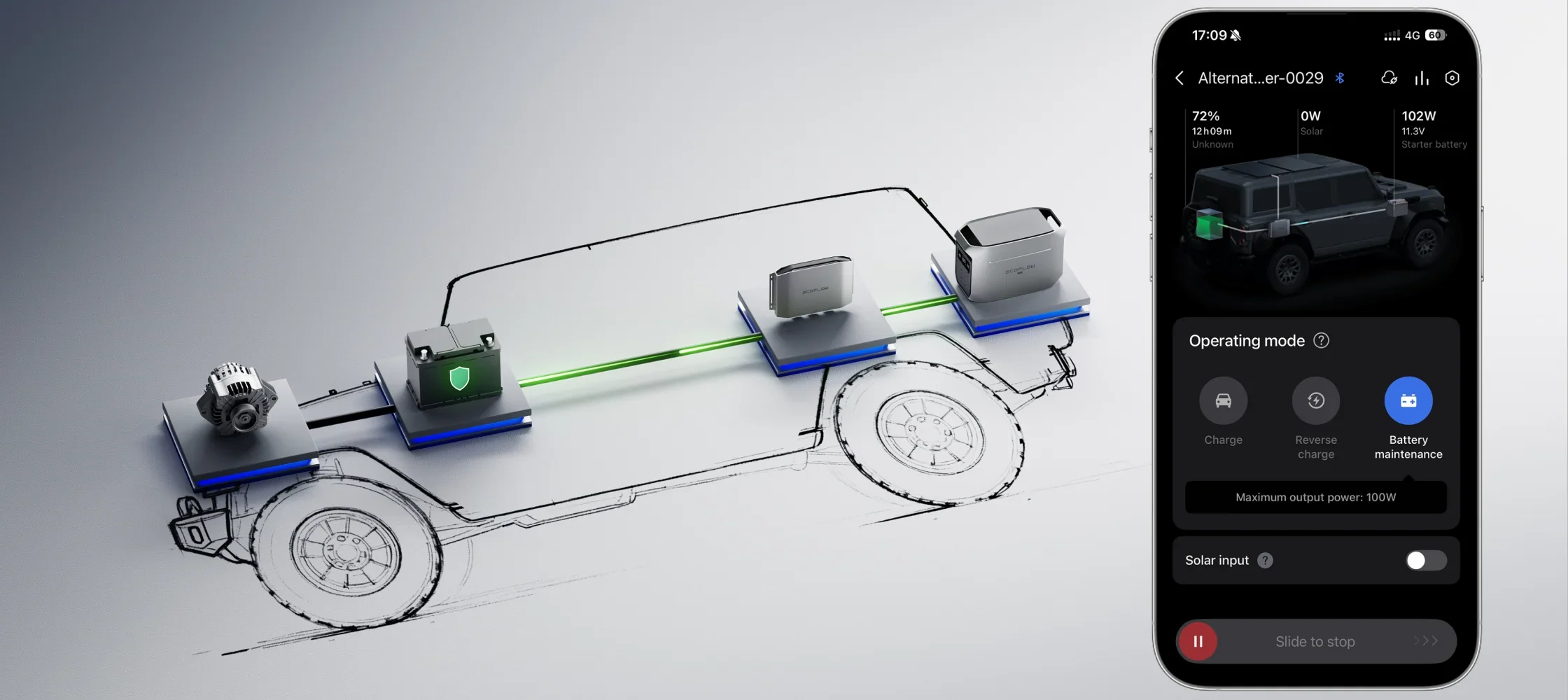 For power stations of 2kWh and above, the Alternator Charger frees you from heavy lifting. Charge your high-capacity unit to full while driving—no more hauling it back home for AC charging. Just leave it in your car and let the alternator do the work.