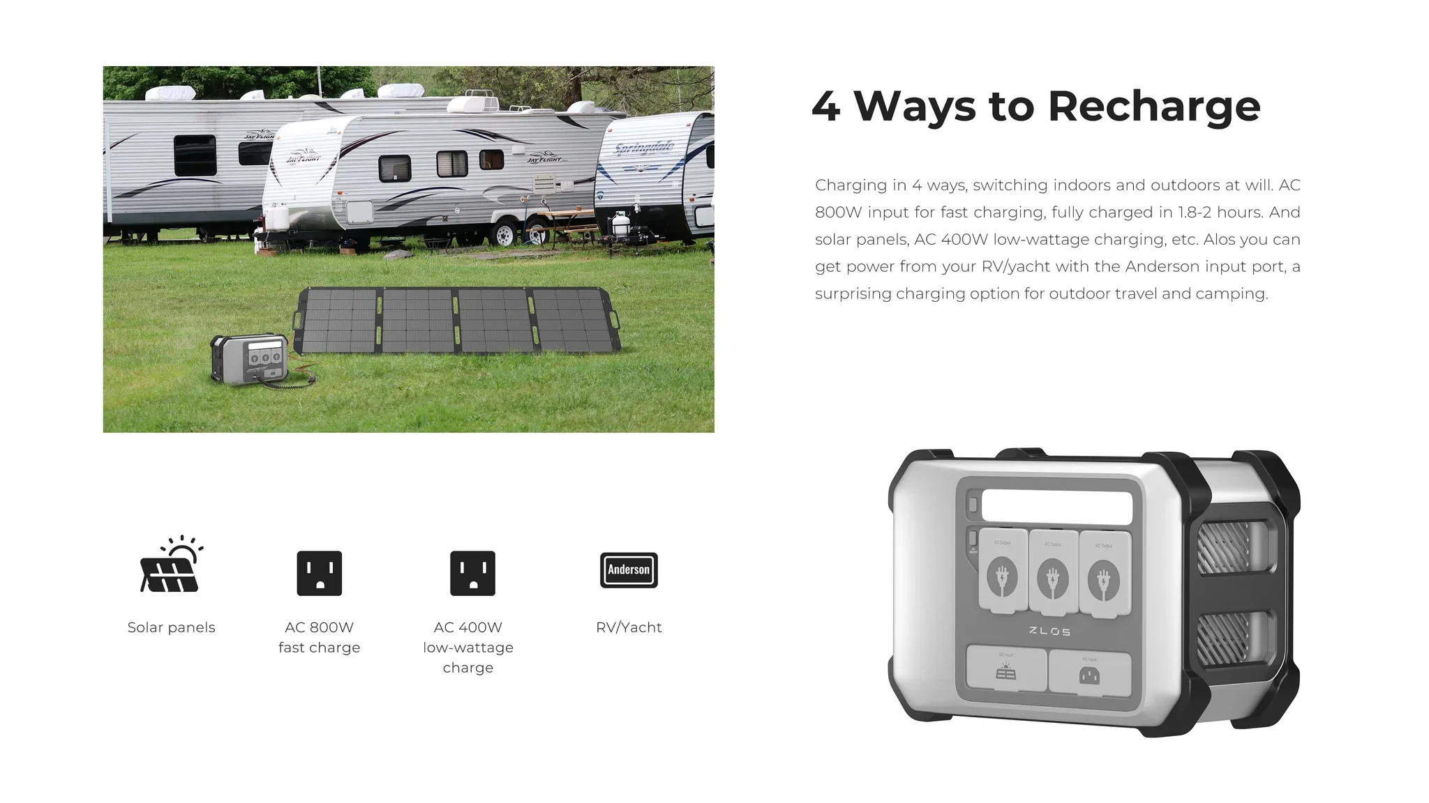 AC 800W input for fast charging, fully charged in 1.8-2 hours